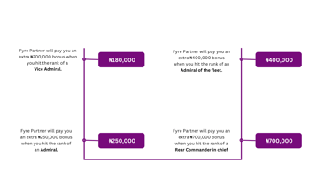Lieutenant: Total commission of ₦100,000 qualifies for the rank of Lieutenant Commander with a bonus of ₦20,000.